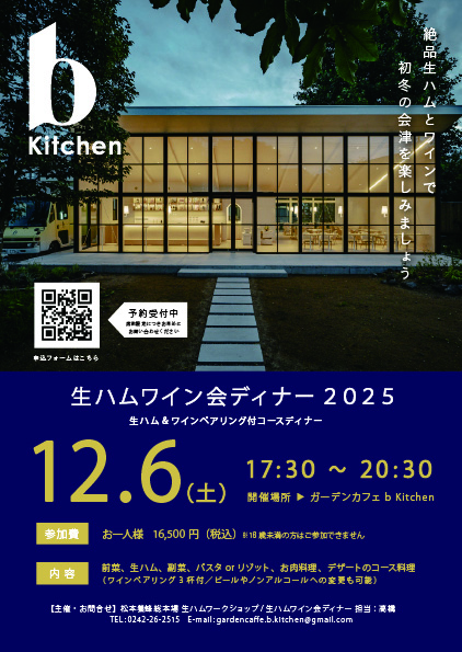 今年も第2回目として、「生ハムワークショップ 2025 in Aizu」及び、「生ハムワイン会ディナー 2025」を開催する運びとなりました!